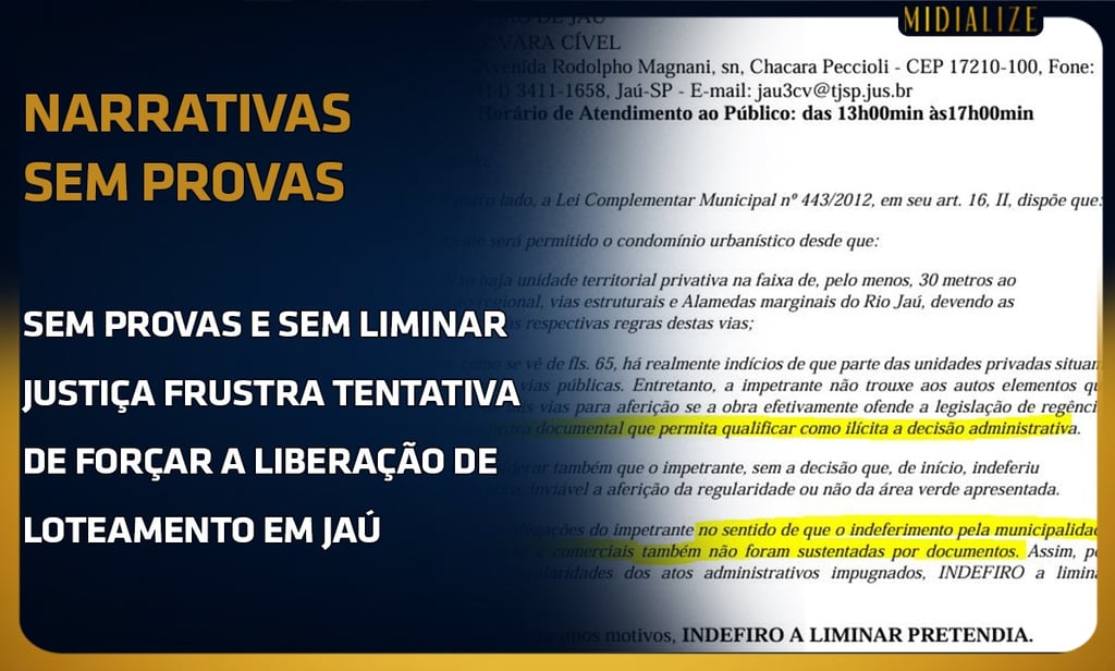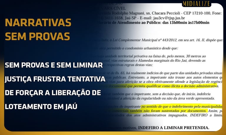 Sem Provas, Sem Liminar: Justiça Frustra Tentativa de Forçar Liberação de Loteamento em Jaú